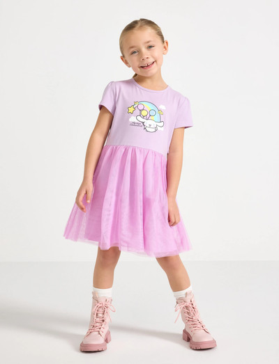 Denne bløde jerseykjole har et legende motiv og en fin tylskørt. De korte ærmer gør den perfekt til de varmere dage.