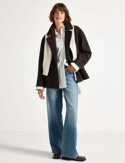 Denne jakke er fremstillet af uld og har en behagelig og afslappet pasform. Designet har en dobbeltradet knaplukning, der tilføjer et strejf af klassisk skrædderkunst til dette overtøjsstykke.
