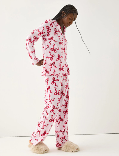 Dette behagelige sæt inkluderer en skjorte med knapper og matchende bukser, perfekt til afslapning. Det bløde jerseystof sikrer en hyggelig nats søvn.
