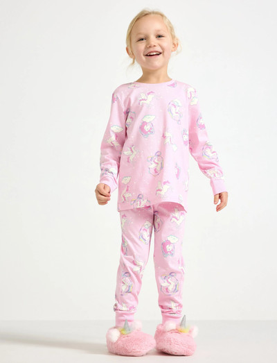 Dette pyjamassæt er fremstillet af blød bomuld og sikrer en behagelig nattesøvn. Sættet indeholder en langærmet overdel og matchende bukser, perfekt til afslapning eller sengetid.