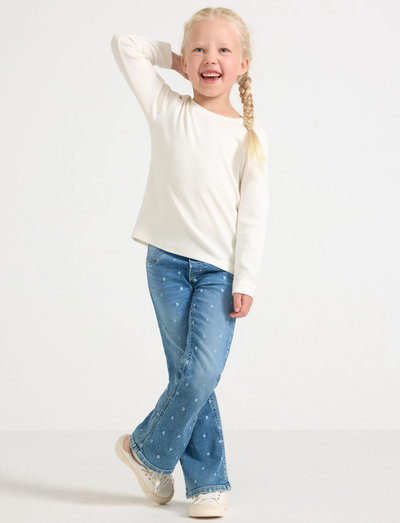Disse flared jeans har et legende hjertemønster og en behagelig pasform med blød denimjersey og elastisk talje. Det strækbare materiale og pull-up-designet gør dem nemme at have på.