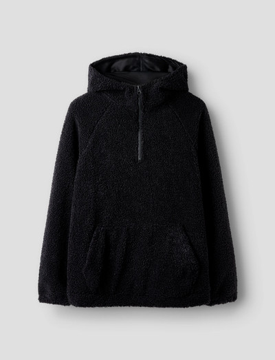 Denne hoodie med halv lynlås har en blød, teddy-lignende tekstur og er et behageligt og stilfuldt valg til hverdagsbrug. Det ubørstede sweatstof har en glat overflade og løkker på indersiden, hvilket giver ekstra komfort. Den har en delt halsudskæring, lange ærmer, lynlåslukning og en kængurulomme.