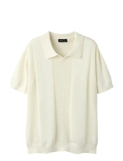 Denne strikkede polotrøje har et detaljeret jacquardmønster, der giver en struktureret tekstur og et tidløst look. Den kortærmede model har ribkanter og en regular fit, hvilket gør den til en alsidig tilføjelse til enhver garderobe.