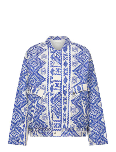 Skab et statement med denne iøjnefaldende bomberjakke. Den oversized pasform sikrer en komfortabel og stilfuld silhuet, mens det jacquardvævede stof har et indviklet mønster med subtile sølv lurex-tråde, der fanger lyset. Den har en metalknaplukning foran, store sidelommer og elastiske kantdetaljer. Den opretstående krave og de sænkede skuldre bidrager til det afslappede udtryk. Bemærk, at lurex-trådene er en del af det unikke design og skal behandles med særlig omhu.