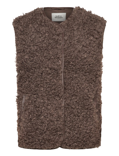 Denne bløde teddyvest er et alsidigt lag-på-lag stykke tøj. Den har en rund halsudskæring, knaplukning foran og praktiske lommer. Kunstlæderkanterne tilføjer et sofistikeret touch, hvilket gør den ideel til at tilføje varme og stil til ethvert outfit.