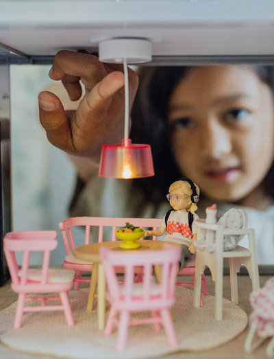 Et dukkehus fra Lundby har alt, hvad der skal til for at skabe sin egen verden. Barnet kan bruge dukkehuset og de små dukkehusrum sammen eller hver for sig og dermed skabe et hjem helt efter sit eget hoved. Det er både sjovt og udviklende at få lov til at indrette sit eget hjem!