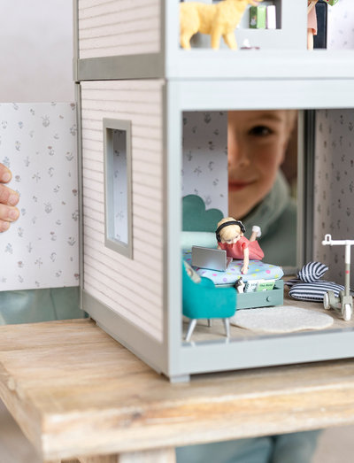 Lundbys fine dukkehus har alle de detaljer, man kunne ønske sig: Flot tapet fra Sandberg Wallpaper og masser af indretningsdetaljer og tilbehør. Vores dukkehusbelysning er forsynet med batteridrevne LED-pærer og indbygget timer. Med Lundbys dukkehusmoduler kan dukkehuset udbygges for at skabe din personlige verden af dukkehuse.