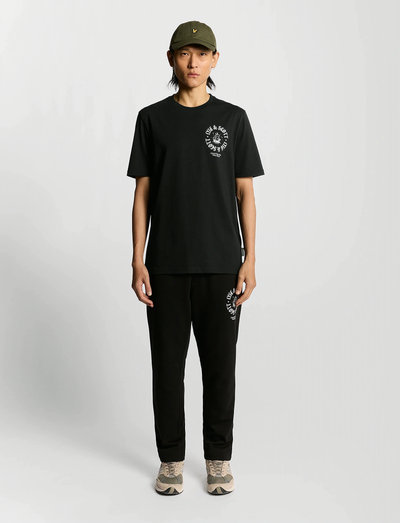 Denne kortærmede T-shirt har en klassisk rund hals og er udsmykket med en grafik af et skibsinsignie. Et behageligt og stilfuldt valg til hverdagsbrug.
