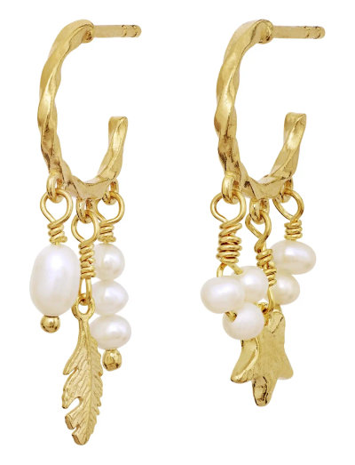 Disse creoler er udsmykket med fine vedhæng. Med ferskvandsperler og charms tilføjer disse øreringe et finurligt præg til ethvert look. De teksturerede creoler fuldender designet.