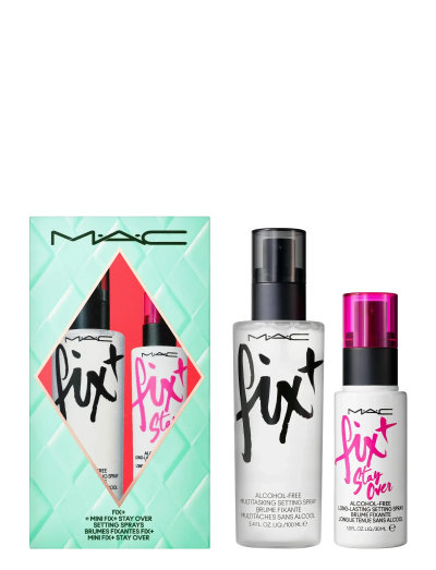 The ultimate holiday party favours for a look that stays put. Outlast every bash with this limited-edition giftable duo featuring a full size of best-selling Fix+ and a mini size of best-selling Fix+ Stay Over. Spritz Fix+ throughout your routine to meld makeup and improve wear with a seamless natural finish - or spray throughout the day to refresh, hydrate and soothe skin. Then, set your holiday look to last all night with Fix+ Stay Over Weightless 24HR Setting pray. Ready to gift in holiday-exclusive packaging at a M·A·Cnificent value.