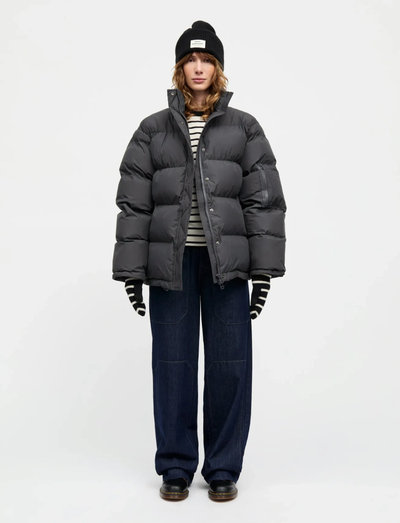 Denne jakke er fremstillet i let ripstop og har en oversized pasform, der gør den behagelig at have på over andre lag. Den har en høj hals og justerbar talje, hvilket forbedrer dens alsidige design. Den er udstyret med skjulte sidelommer og en ærmelomme, der giver praktisk opbevaring uden at gå på kompromis med stilen. Den skjulte lynlåslukning sikrer et elegant og strømlinet look.