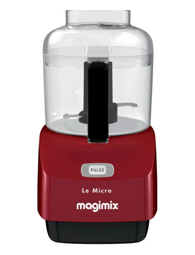 Magimix minihakker er effektiv, stilfuld og støjsvag. Den optager kun lidt plads på køkkenbordet og har et så flot design, at du gerne lader den stå fremme. Betjeningen er enkel. Låget har to åbninger til påfyldning af henholdsvis flydende og faste ingredienser, sættes let på og tages lige så nemt af. På fronten findes en enkelt knap til at aktivere både pulse-funktion og kontinuerlig kørsel, når knappen holdes nede.