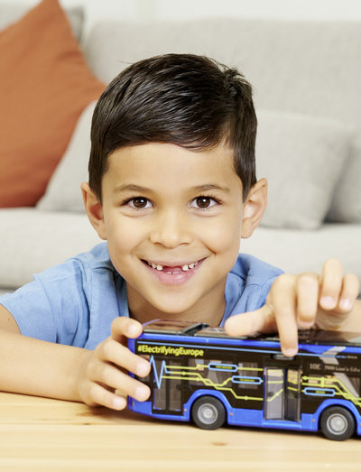 Welcome aboard an amazing toy bus that happens to be an exact replica of the well-known Man's Lion's City buses. This impressive Majorette replica is precision-crafted from high-quality die-cast material, making it just as good in the playroom as it is on the collector's shelf. The bus has a freewheel function and soft rubber tires that allow it to roll across the floor with ease, while its detailed interior and opening side doors add a realistic feel to play. It is also equipped with exciting light and sound functions! Scale: 1:43. Length: 22.5 cm. From 3 years.