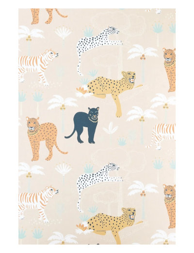 An eco- friendly wallpaper from Majvillan with big jungle cats where tigers, leopards and black panthers all make an appearance. The wallpaper is produced in Sweden and printed on a non-woven material with colors that are water-based and completely free from solvents and PVC. Excess color is managed in an environmentally sound manner and paper waste is converted into heat. The wallpaper has a very beautiful surface where you can feel the color structure with the bare hand. Easy to install, just apply non woven non woven glue directly to the wall. Wallpaper roll: 10,05 meter in lenght and 53 cm wdith and 26,5 cm in pattern height.