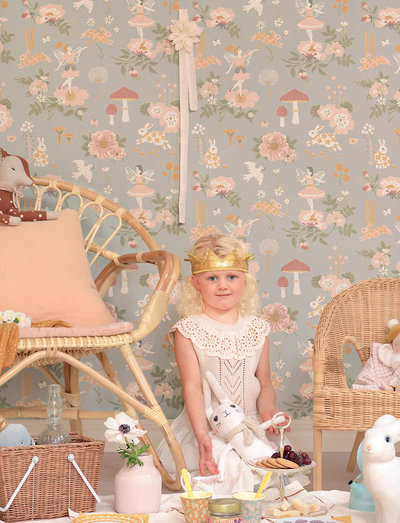Et dejligt, magisk og miljøvenligt tapetdesign fra Majvillan med feer og paddehatte blandt blomster og kaniner. Tapetet er produceret i Sverige og trykt på et ikke-vævet materiale med farver, der er vandbaserede og helt fri for opløsningsmidler og PVC. Overskydende farve håndteres på en miljømæssig forsvarlig måde, og papiraffald omdannes til varme. Tapetet har en meget smuk overflade, hvor man kan mærke farvestrukturen med den bare hånd. Let at sætte op, bare påfør non woven lim direkte på væggen. Lige match og mønsterhøjde 53 cm.