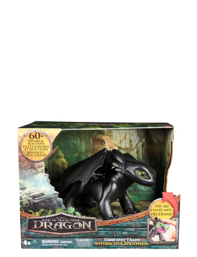 Tag eventyret med Sådan Træner Du Din Drage med hjem med Tame & Train interaktive Tandløse. Åbn "buret" og byd din helt egen Tandløse velkommen. Vind hans tillid ved at holde hans yndlingssnack, den medfølgende fisk, og følg med, mens han følger fisken og dine bevægelser. Udvikl dit bånd med Tandløse, mens han går fra vild til tam med 5 forskellige personligheder. Lås op for sjove spil som "fangeleg", "følg mig" og "kylling" og oplev flere reaktioner og lyde fra Night Fury. Oplev det ultimative bånd og se hans plasmaangreb med fjederaktiverede 51 cm vinger og blinkende blå øjne. Løft Tandløse for at høre flyvelyde fra din nyvundne drageven. Batterier medfølger. Børn kan genskabe yndlingsscener eller finde på nye historier i rolleleg og sanseleg med denne engagerende figur. Uanset om det er til fødselsdag, ferie eller anden anledning, er denne dragefigur en fantastisk gave, der inspirerer til heltemodige eventyr. Oplev flere episke oplevelser med Battle Dragons actionfigurer, flyvende RC Tandløse, brætspil, legetøjsfigurer & legesæt, vikingefigurer, bamser og plyslegetøj. (Sælges hver for sig.)