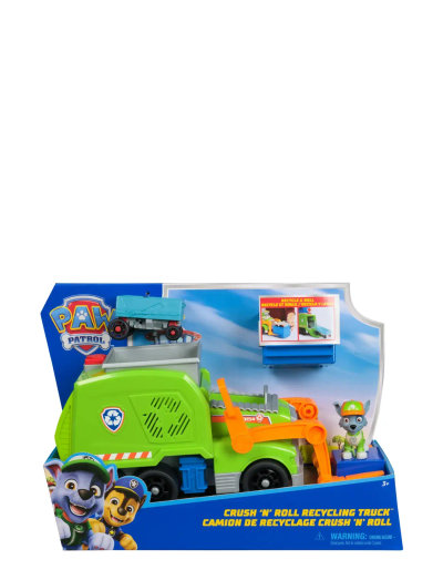 Red dagen med Rocky og hans Crush 'N' Roll legetøjsgenbrugslastbil. Sæt Rocky ind i førersædet, før du kører af sted på din mission. Læg det krøllede køretøj i skraldespanden, skub derefter skraldespanden op på legetøjsgaffeltrucken, og træk gaffeltruckens håndtag tilbage for at læsse det krøllede køretøj ind i genbrugsstationen, og tryk derefter på knappen på legetøjsskraldebilen for at sænke rampen og forvandle det krøllede køretøj til et mini-legetøjskøretøj, som Rocky kan køre på. PAW Patrol-legetøj til førskolebørn og læringslegetøj til småbørn er gaver til børn, der er fans af serien, og fremmer fantasifuld leg og forbedret finmotorik. Genoplev dine yndlingsøjeblikke fra PAW Patrol-sæsonerne, som Mighty Pups og PAW Patrol: The Movie, og skab så dine egne eventyr med PAW Patrol-hvalpene og deres respektive legetøjsbiler (sælges hver for sig). Øg spændingen med de komplette sæt med Action Pups og Air Rescue-teamet, som omfatter PAW Patrol-køretøjer, actionfigurer og småbørnslegetøj, så du kan få uendeligt mange timer med PAWsome, serieinspirerede eventyr.