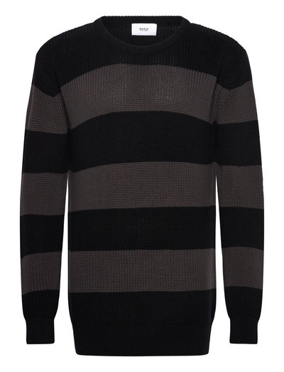 Makia Bimini Knit er en klassisk strikket sweater med striber og en afslappet pasform. Den er lavet af et blødt og behageligt strikket stof. Sweateren har en rund hals og lange ærmer.
