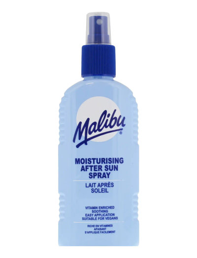 Malibu After Sun - køler, fugter og bevarer din solbrændthed. Den milde og skånsomme formel plejer huden efter soleksponering og hjælper med at forlænge den solbrune glød. Beriget med Menthyl Lactate, et skånsomt alternativ til mentol, som giver en behagelig kølende fornemmelse. Indeholder også E-vitamin, provitamin B5 og aloe vera - ingredienser, der hjælper med at genoprette hudens fugtbalance efter en dag i solen.