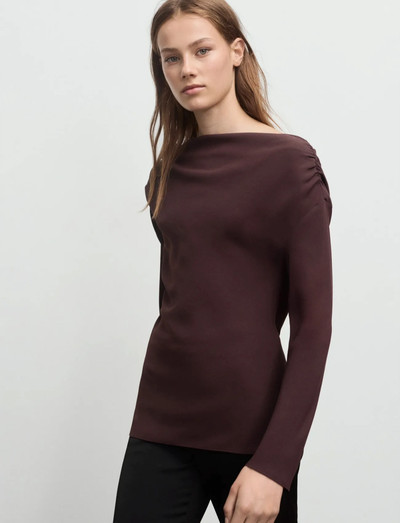 En asymmetrisk halsudskæring giver denne langærmede top et moderne udtryk. Den er designet med en tætsiddende pasform og har desuden diskrete rynkedetaljer ved skulderen, der giver et ekstra touch.