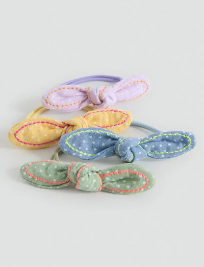 Disse charmerende hårelastikker tilføjer et legende præg til enhver frisure. Hver elastik har en sød sløjfe, der er perfekt til at holde håret pænt og stilfuldt.