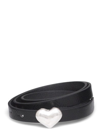 En charmerende hjertedetalje tilføjer et sødt touch til dette skinny bælte. Det er fremstillet i imiteret læder og har en trykknaplukning, der gør det nemt at bruge.