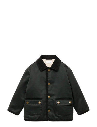 Denne parka med vokset finish og kontrastkrave giver både varme og stil. Designet har et lige snit, plysfor, lange ærmer, to påsyede lommer foran og knaplukning.