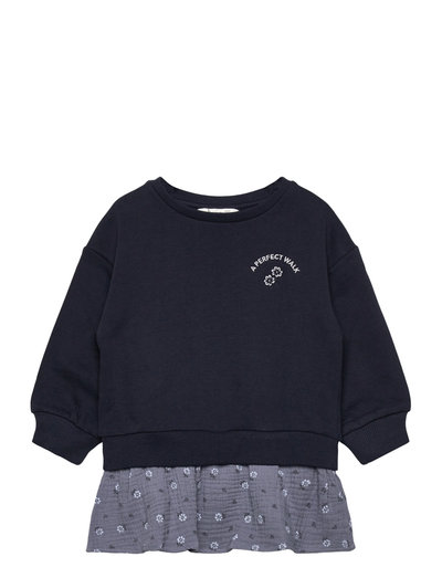 Denne charmerende kjole er fremstillet af ren bomuld og har et dejligt blomsterdesign. A-linje silhuetten sikrer en behagelig pasform, mens det dobbelte lag tilføjer et strejf af elegance. Perfekt til skoledage eller afslappede udflugter, og kombinerer komfort og stil uden besvær.