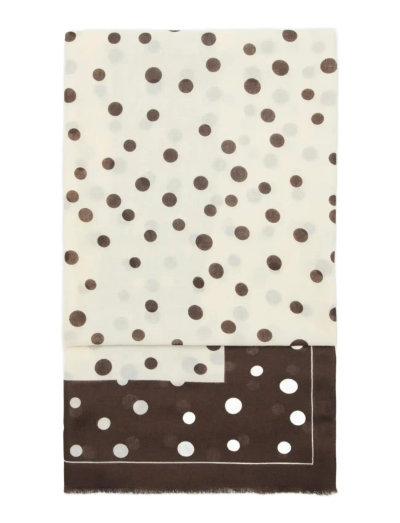 Dette tørklæde er fremstillet i et let stof og har et allover-print med prikker. Designet er afsluttet med en let frynsekant, der tilføjer et strejf af tekstur.