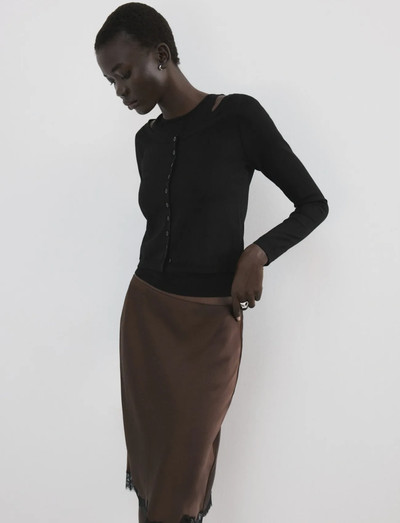 Denne fine striktrøje har et kombineret design, der giver et unikt lagdelt look. Den langærmede beklædningsgenstand har en klassisk rund hals og en knaplukning foran.