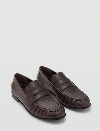Disse flade loafers er fremstillet af smidigt okselæder og har en rund tå og en markant bånddetalje. Designet har en rynket detalje, der tilføjer et strejf af tekstur til den klassiske silhuet. De er afsluttet med en behagelig indvendig foring og en slip-on-stil.