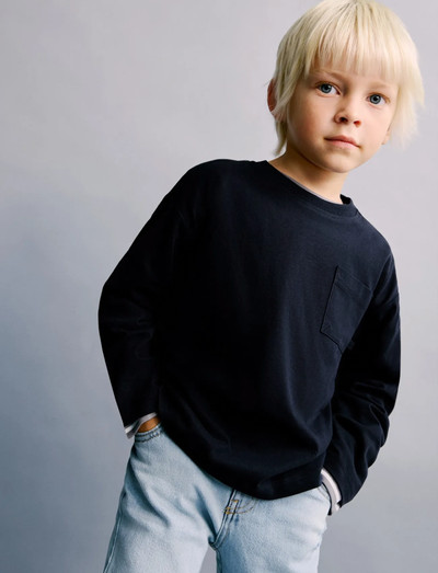 Denne langærmede T-shirt er fremstillet af ren bomuld og tilbyder komfort og stil til hverdagsbrug. Den har en klassisk rund hals og en praktisk påsyet lomme på brystet, hvilket gør den til en alsidig tilføjelse til enhver garderobe.