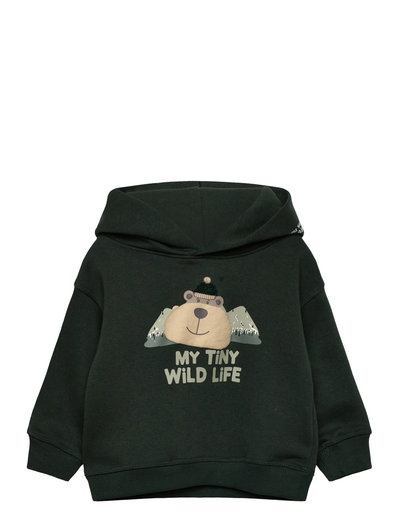 Denne hættetrøje har et legende teddybjørneprint og tilbyder både komfort og stil. Sweatshirten med lige design er fremstillet af blødt bomuldsstof og har et vatteret bomuldsinteriør for ekstra varme, hvilket gør den ideel til køligere dage. Den har også lange ærmer og en hætte.