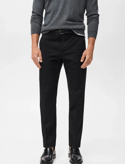 Cotton fabric, Regular fit, Ironed stripe detail at front and back, Front zip and button closure, Belt loops, Two side pockets, Two welt pockets with button at the back