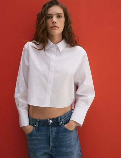 Denne afgrænsede skjorte fra Mango er et stilfuldt og alsidigt stykke. Den har en klassisk knaplukning og lange ærmer. Den afgrænsede længde gør den perfekt til at parre med højtaljede bukser eller nederdele.