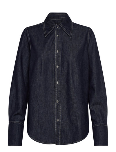 Denne skjorte er fremstillet i bomuld med et denim-look og har lange ærmer med manchetter med knapper. Det lige design fremhæves af kontrastsømme og en knaplukning foran.