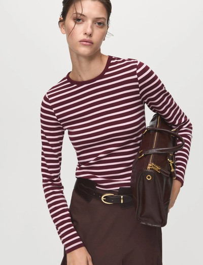 Denne langærmede top har et klassisk stribet mønster, der giver et tidløst look. Det figursyede design og den runde halsudskæring skaber en flatterende silhuet, hvilket gør den til en alsidig tilføjelse til enhver garderobe.