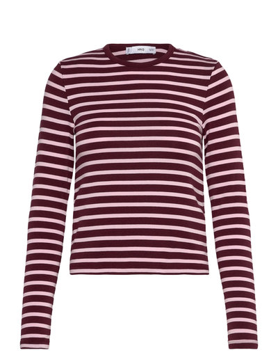 Denne langærmede top har et klassisk stribet mønster, der giver et tidløst look. Det figursyede design og den runde halsudskæring skaber en flatterende silhuet, hvilket gør den til en alsidig tilføjelse til enhver garderobe.
