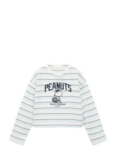 Denne langærmede t-shirt er fremstillet af ren bomuld og har et broderet Snoopy-design. Den klassiske runde hals og det legende stribemønster gør den til en alsidig tilføjelse til enhver garderobe.