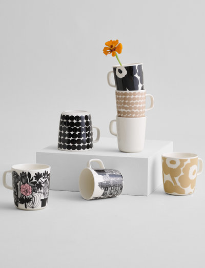 Oiva-kruset er lavet af hvidt stentøj, der tåler opvaskemaskine, ovn, mikroovn og fryser.Fjern venligst klistermærket fra bunden af produktet før brug. klistermærket indeholder en lille mængde metal.unikko (valmue), der symboliserer kreativitet, blev født i en tid, hvor næsten ingen blomstermotiver indgik i marimekkos kollektioner. maija isola blev imidlertid fascineret af temaet blomster og besluttede at skabe en hel serie af nye blomsterprint.