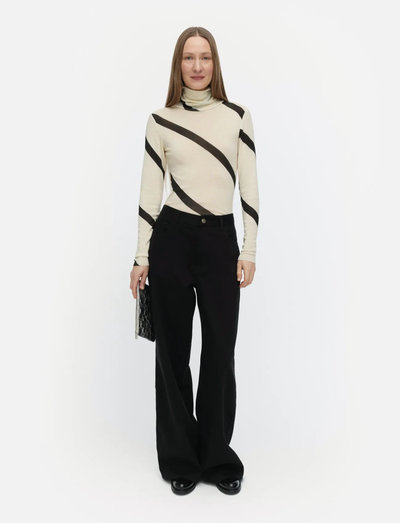 Denne gennemsigtige turtleneck er fremstillet af certificeret merinouldrib og har en lige, slank pasform. Designet har et markant diagonalt stribemønster og rå kanter ved manchetterne og forneden.