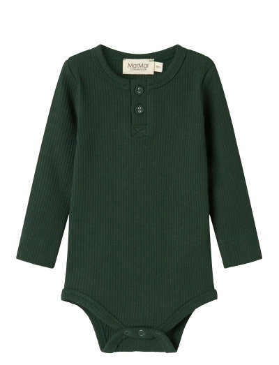 Langærmet bodystocking med stolpe knaplukning, der bliver lukket med trykknapper mellem benene for nem bleskiftning.