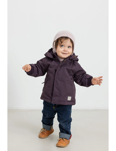 Behagelig og åndbar vinterjakke til de mindste. Jakken føles meget let og blød på kroppen, har to lynlås lommer, aftagelig hætte og lukkes med lynlås og trykknapper foran.