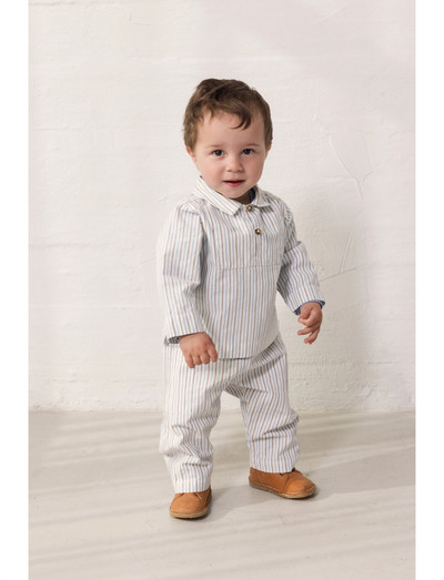 Langærmet skjorte med krave og halvlukning foran med to knapper.