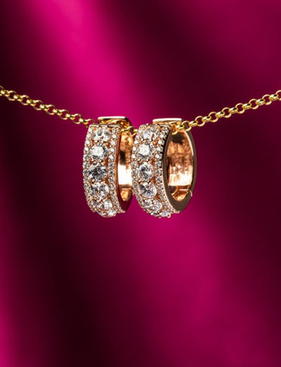 Disse forgyldte øreringe er en smuk og elegant tilføjelse til ethvert outfit. De har et delikat hoops design med glitrende kubiske zirkonsten. Øreringene er perfekte til hverdagsbrug eller særlige lejligheder.