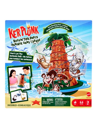 Fejr 25-års jubilæet for det klassiske Tumblin’ Monkeys-spil ved at spille denne rokkende version, der har 3 forskellige slags dyr, der falder fra et trætårn, der vipper frem og tilbage. De pinde, spillerne trækker fra træet, har også tre snoede former, der rokker tårnet, når spillerne trækker i dem, hvilket gør det endnu sværere at forhindre dyrene i at falde ned fra træet. Spillerne kaster terningen for at se, hvilken pind de skal trække i, og forsøger så forsigtigt at fjerne den. Den spiller, som har fået færrest dyr til at falde ned, når spillet er slut, har vundet. Fantastisk gave til dyre- og spilelskere fra 5 år. Farver og mønstre kan afvige fra det viste.