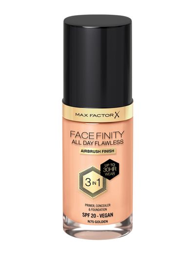 Max Factor Facefinity All Day Flawless 3-i-1 Foundation er en flydende foundation med indbygget primer og concealer, der giver et fejlfrit og airbrushed-look. Produktets Flexi-hold_-teknologi er designet til at give en langtidsholdbar mat finish, der føles fjerlet og behagelig på huden hele dagen. Formlen er 100% vegansk, vandfast, berøringssikker, svedtæt og oliefri. Primeren giver en glat base og holder makeuppen på plads, mens concealeren effektivt dækker ufuldkommenheder og mørke rande, samt reducererporernes udseende. Max Factor Facefinity All Day Flawless findes i 9 nuancer og indeholder 3 typer af olieabsorberende pudder, samtidig med, at den smelter perfekt ind med huden. Udover at produktet indeholder SPF 20, for at beskytte din hud mod solen, beskytter den nu også imod blåt lys fra skærme, samt den forurening der er i luften _ det kalder vi foundation med klimasikker teknologi!
