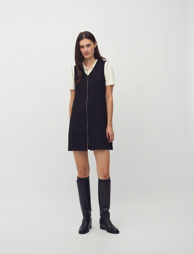 Denne kjole har et ærmeløst design med en gennemgående lynlås, hvilket gør den til en alsidig tilføjelse til enhver garderobe. V-udskæringen tilføjer et strejf af elegance, hvilket gør den velegnet til både afslappede og mere formelle lejligheder.