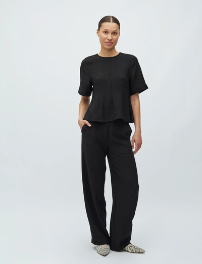 Denne kortærmede top har en subtil tekstur, der giver et raffineret udseende. Designet har en klassisk rund halsudskæring og en strømlinet silhuet, hvilket gør den til en alsidig tilføjelse til enhver garderobe.