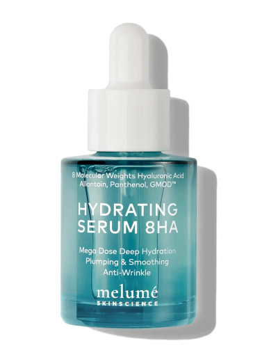 Melumé hyaluronic acid serum is infused with 8 different sizes of hyaluronic acid for intense plumping multi-level hydration and anti-wrinkle benefits.